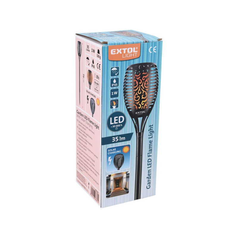 EXTOL LIGHT éjszakai, kerti LED lámpa, lángoló fáklya hatás, 1W; 35 Lm, napelem+szenzor, Ni-Mh akku, 800mAh, kerti, leszúrható,