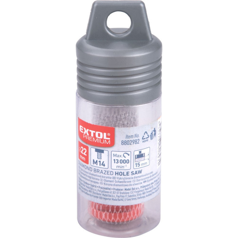 EXTOL PREMIUM körkivágó csempére, gyémánt vágóél; 22mm × M14, sarokcsiszolóba fogható
