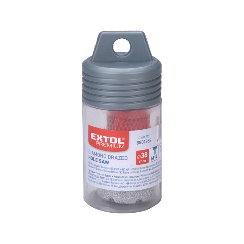 EXTOL PREMIUM körkivágó csempére, gyémánt vágóél; 38mm × M14, sarokcsiszolóba fogható