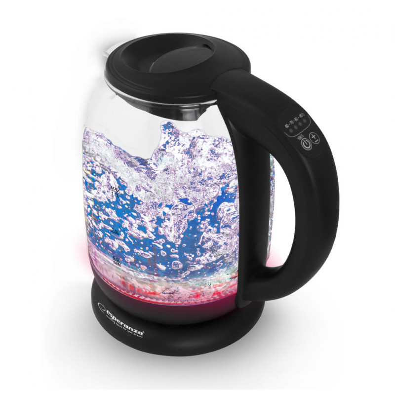 Elegáns Elektromos Üveg Vízforraló LED-del és Hőmérséklet-szabályozóval - Fekete - 1.7 L - Loire - EKK027