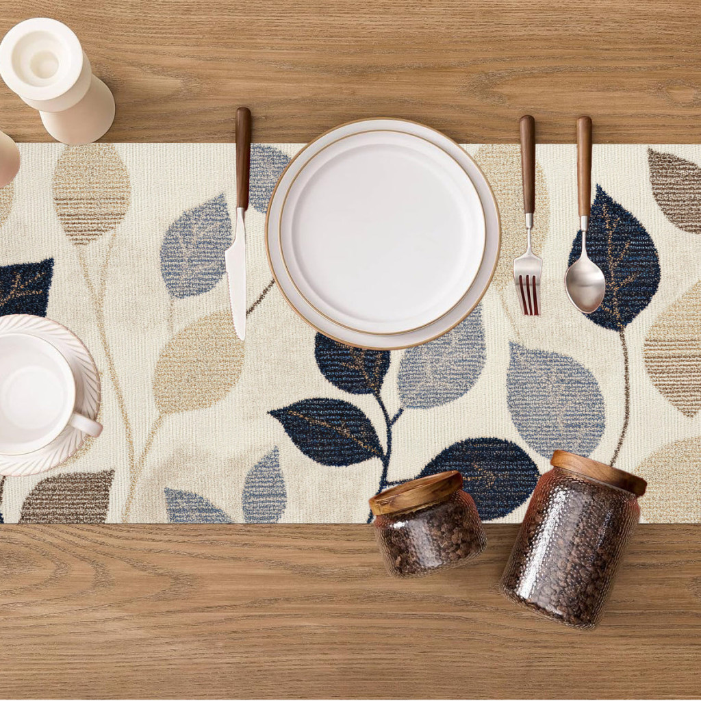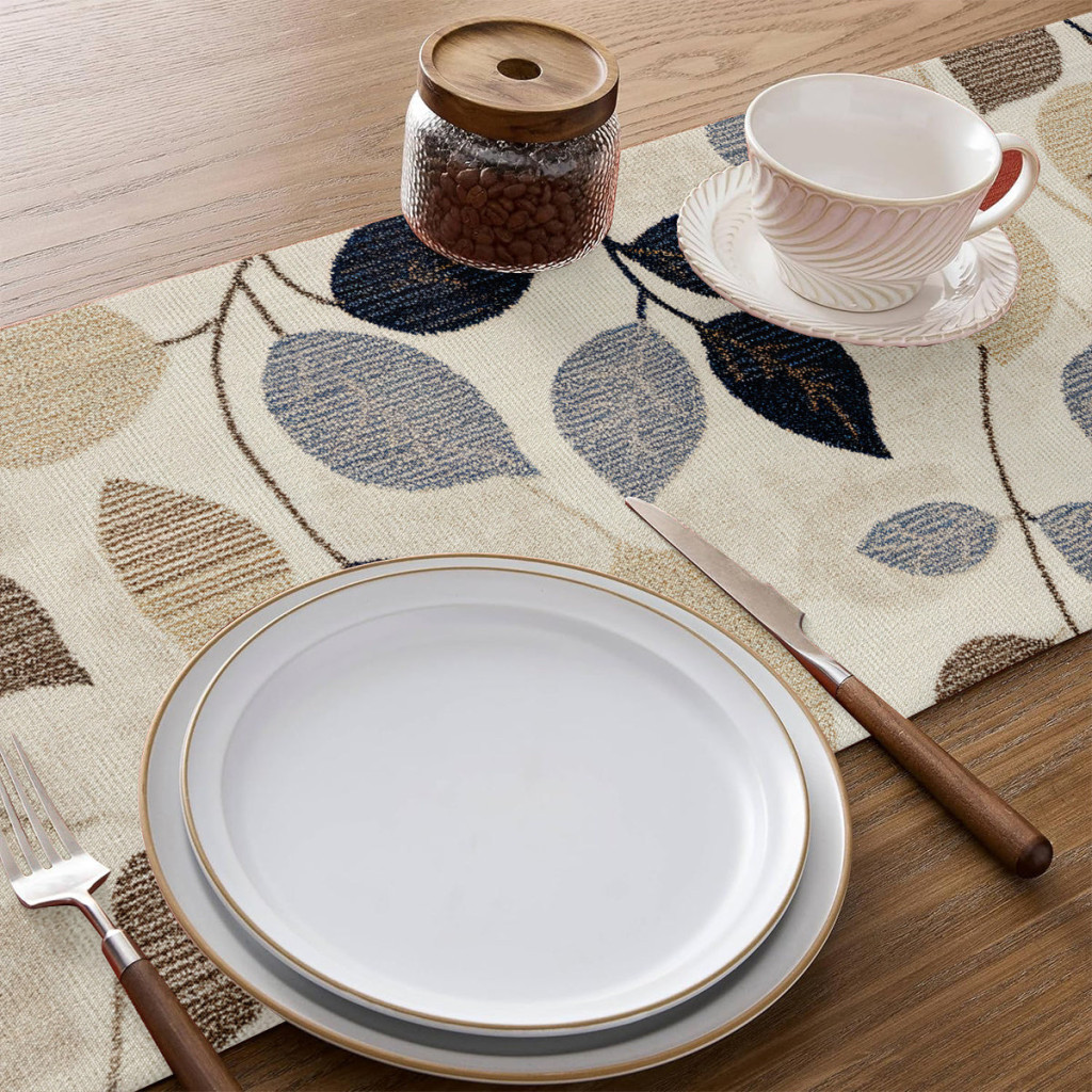 Elegáns levélmintás, 100% poliészter szőtt négyzet alakú asztaldísz