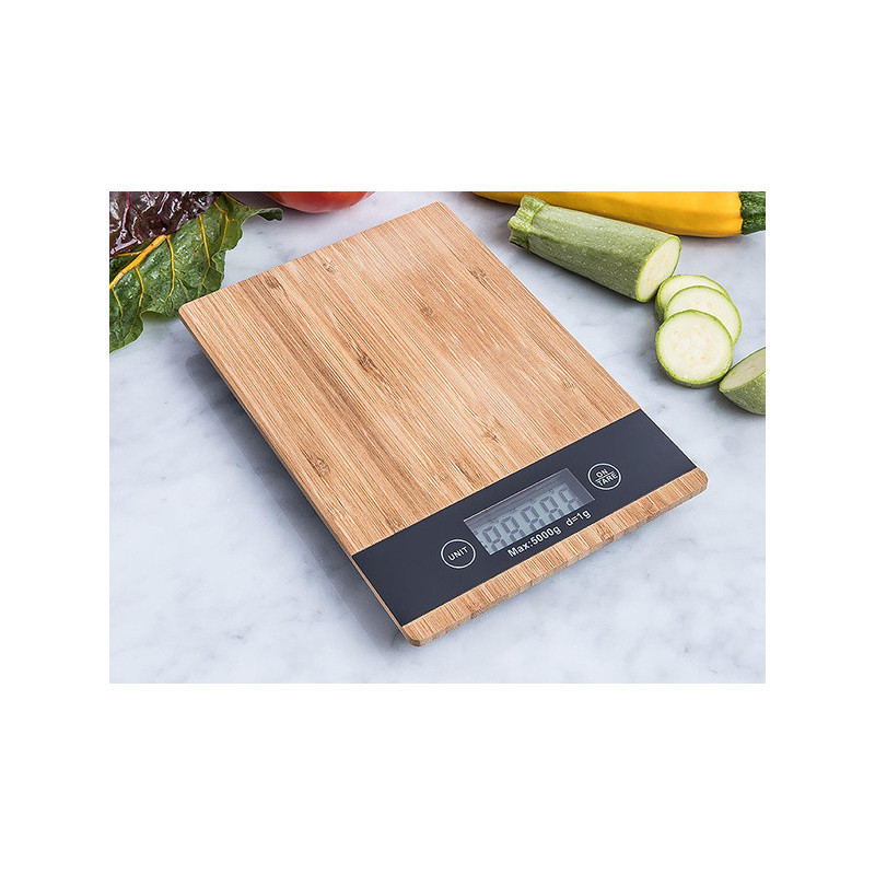 Elektronikus bambusz konyhai mérleg LCD kijelzővel 5 kg-ig