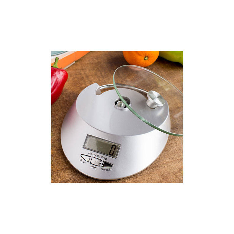Elektronikus üveg konyhai mérleg 5kg / 1g időmérővel