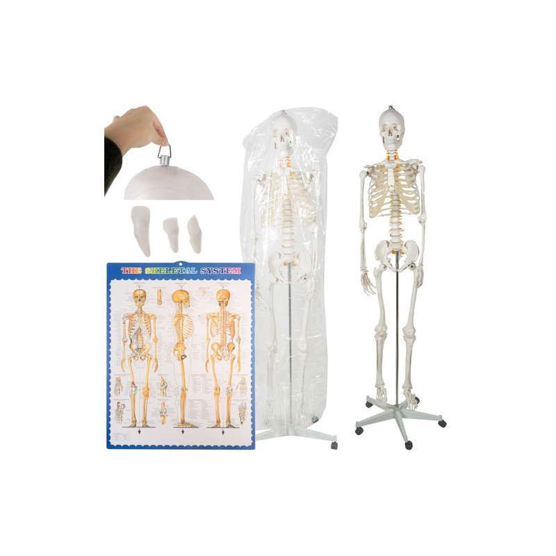 Emberi csontváz - 170cm magas Malatec 22583, anatómiai modell, iskolai Tartásjavító heveder, oktatási eszköz, orvosi modellezés