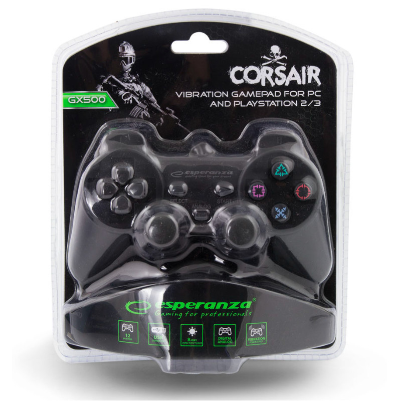 Esperanza Játékvezérlő PS2/PS3/PC USB fekete