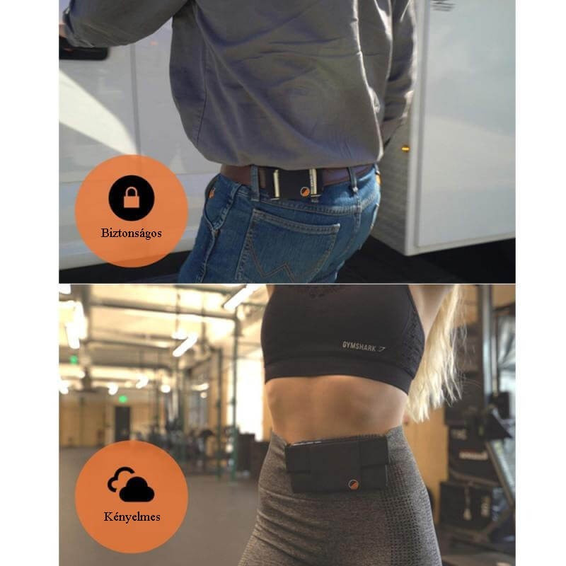 Észrevehetetlen pénztárca, sport telefontartó, Nadrágra és övre rögzíthető pénztárca