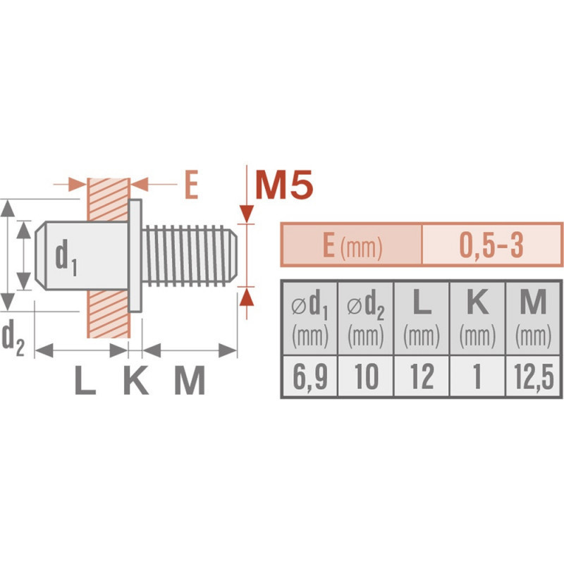 M5×10 mm műanyag dobozban javasolt szerszám: 4770639 szegecs fogó - Májusban érkezik!