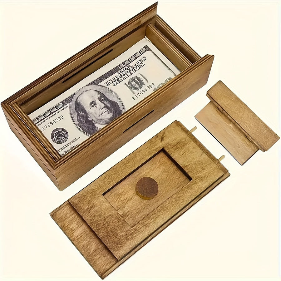Fa Puzzle Pénzes Doboz Titkos Rekeszzel