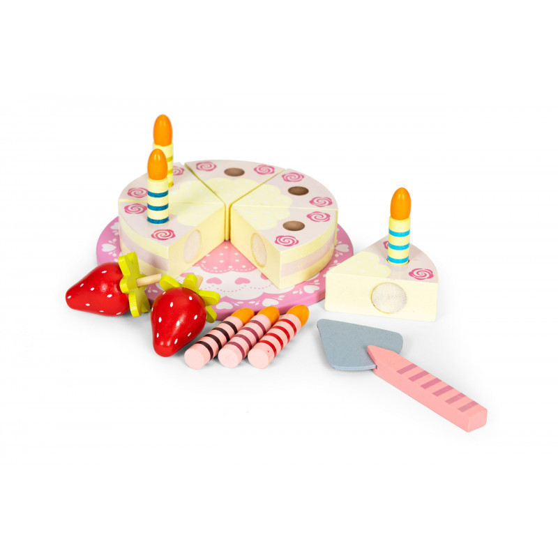 Fa Velcro torta, gyümölcs és gyertya készlet gyerekeknek, 16 elemes