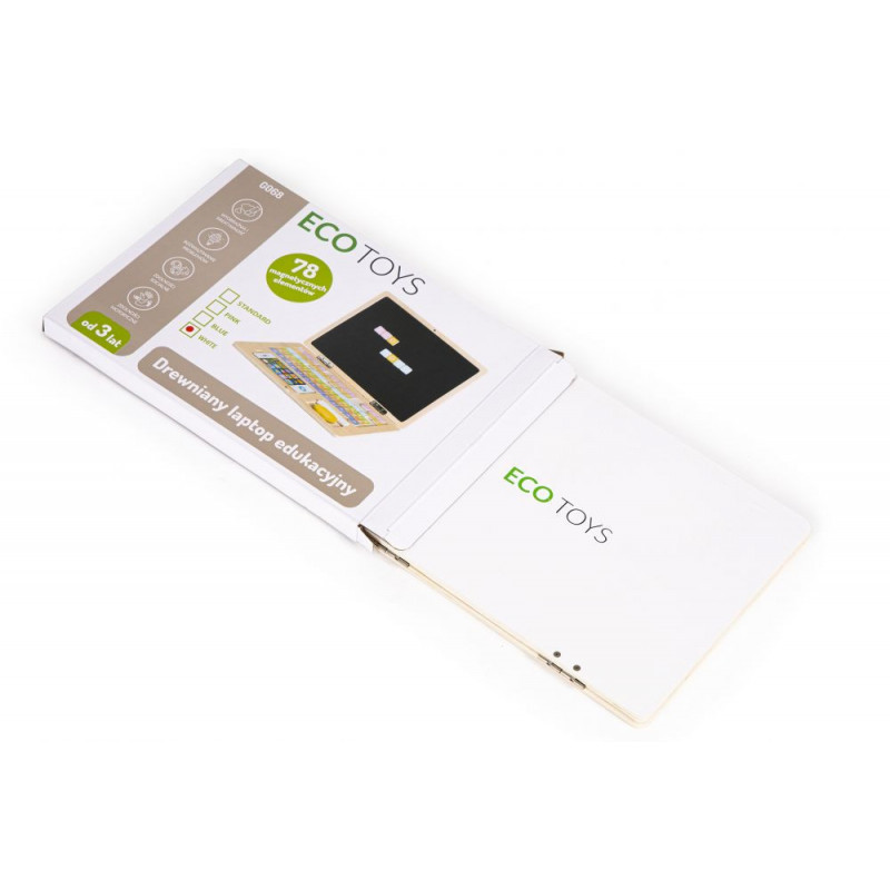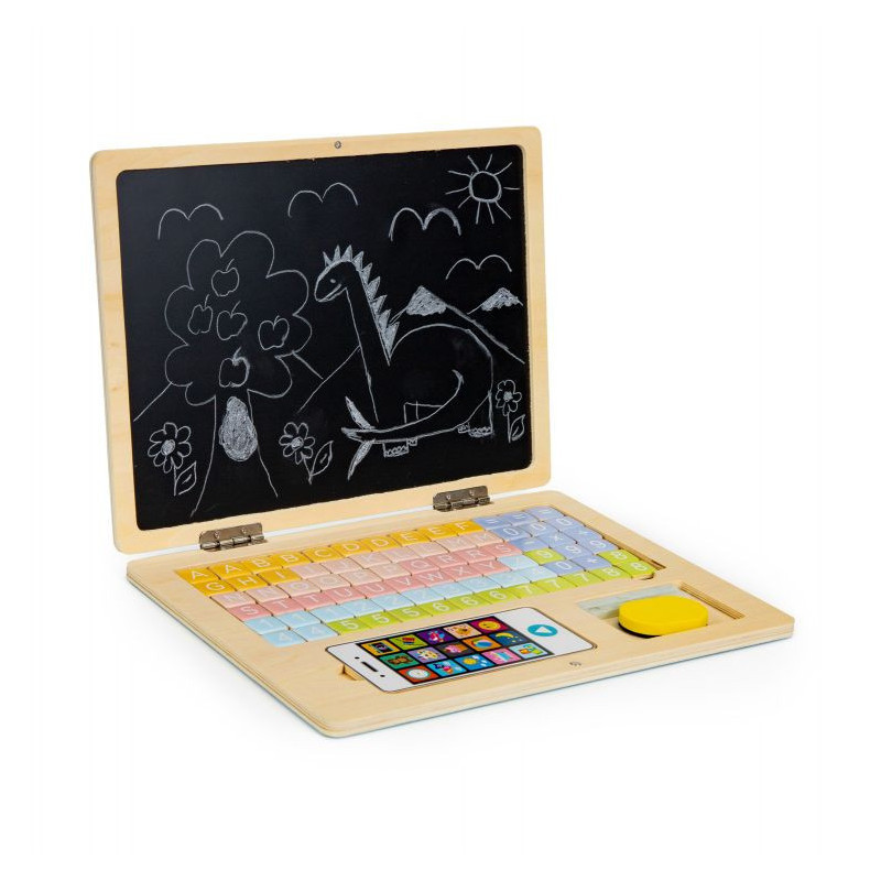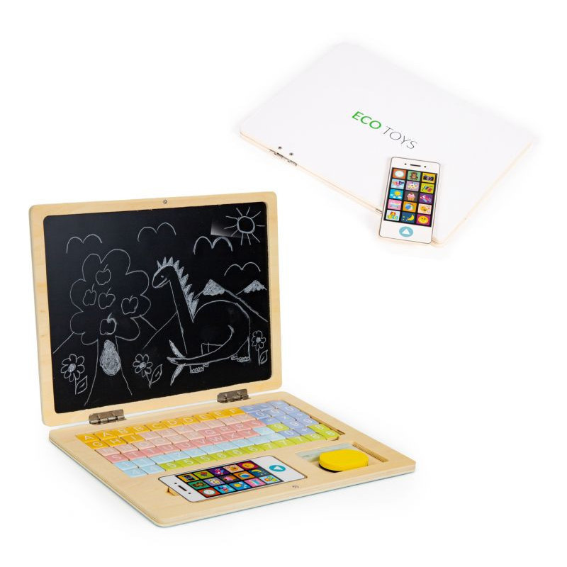 Fa mágneses oktató fekete tábla laptop telefonnal és betűkkel ECOTOYS