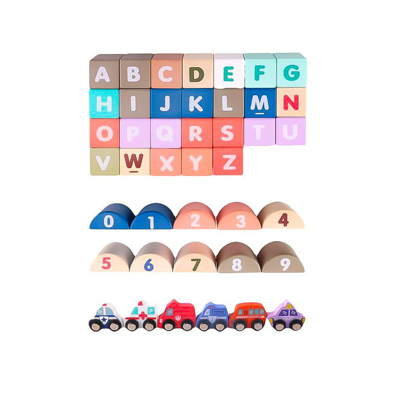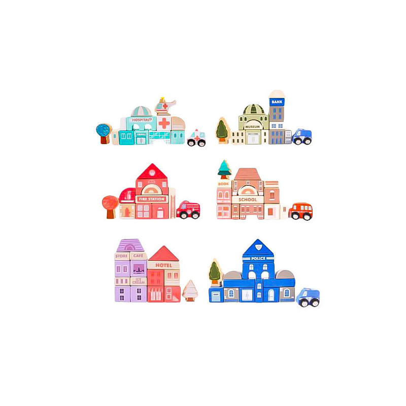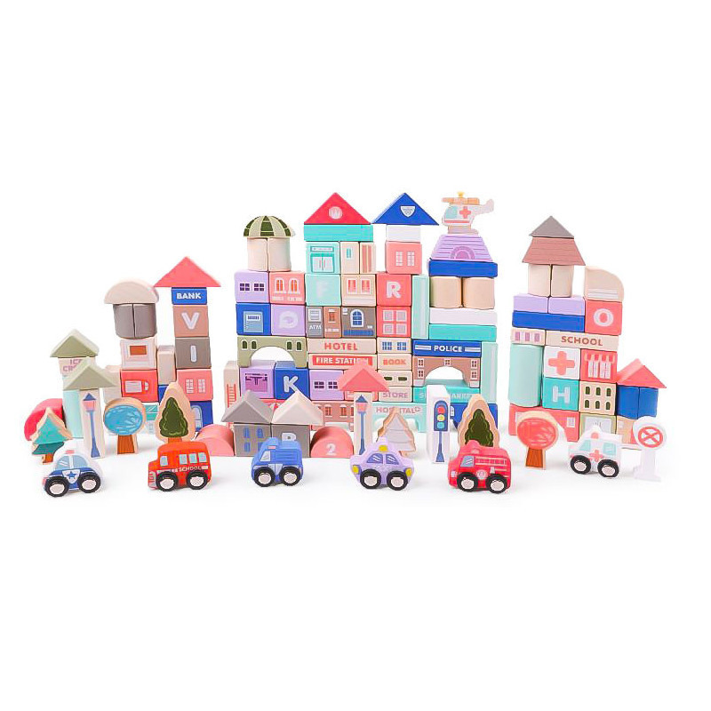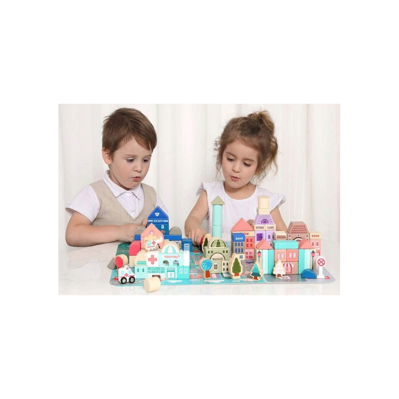 Fa oktató építőkocka város szőnyeggel 115 db ECOTOYS