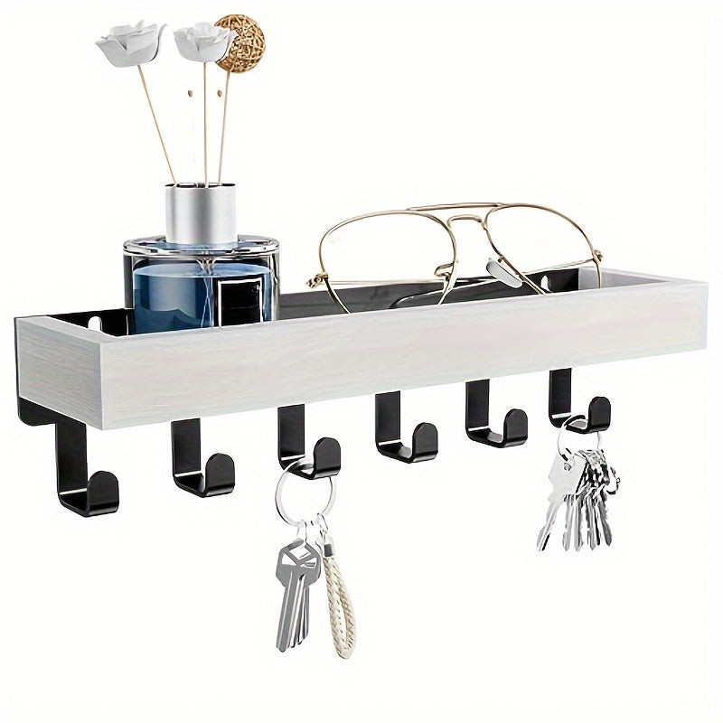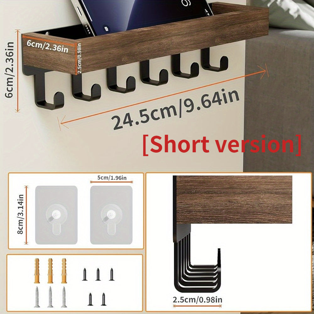 Falra szerelhető Fa ruhafogas, kulcstartó tálcával