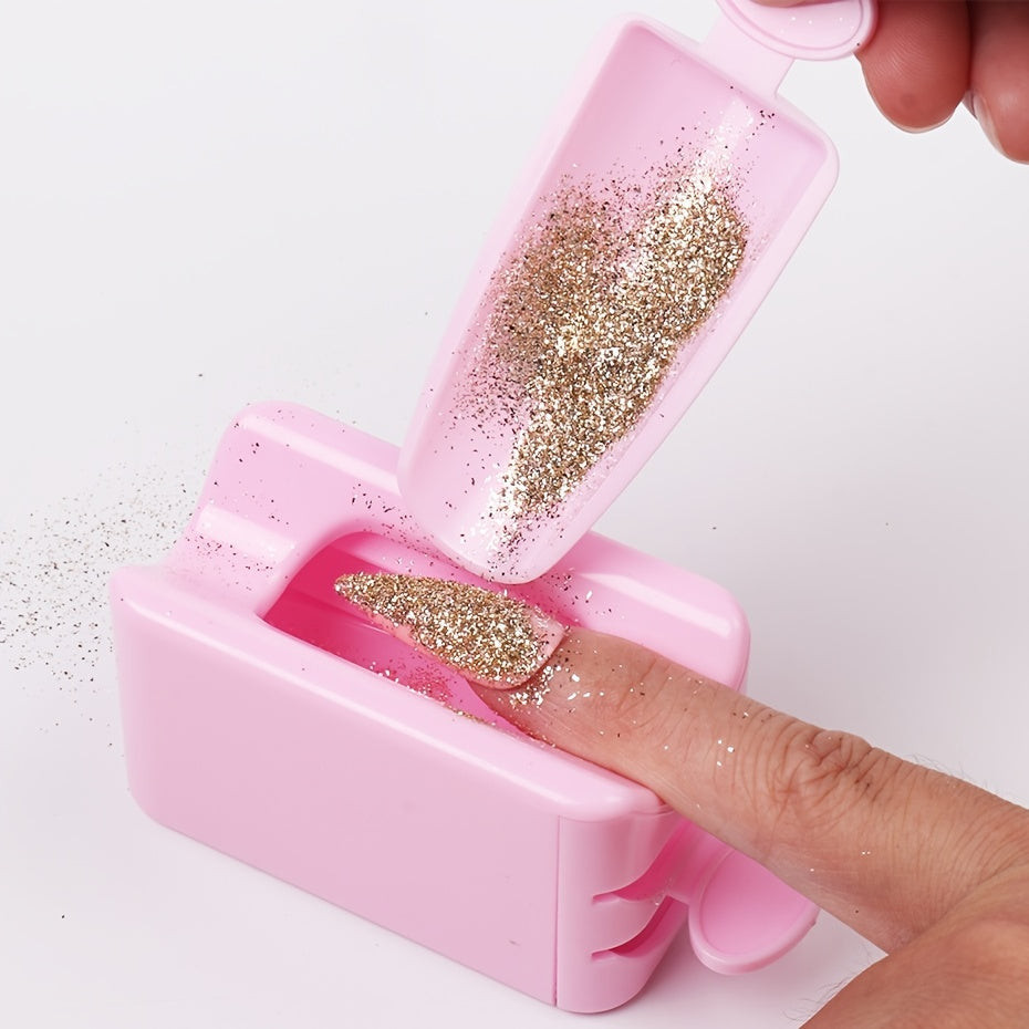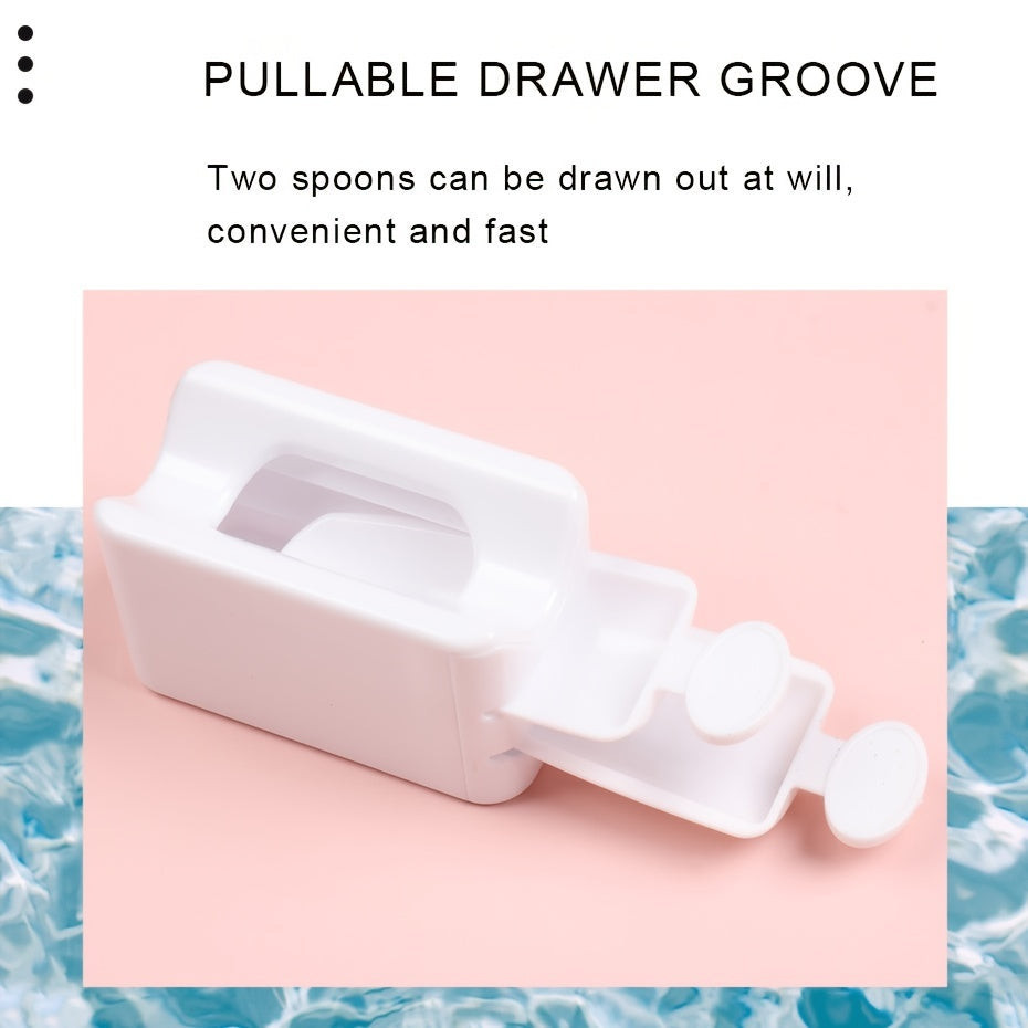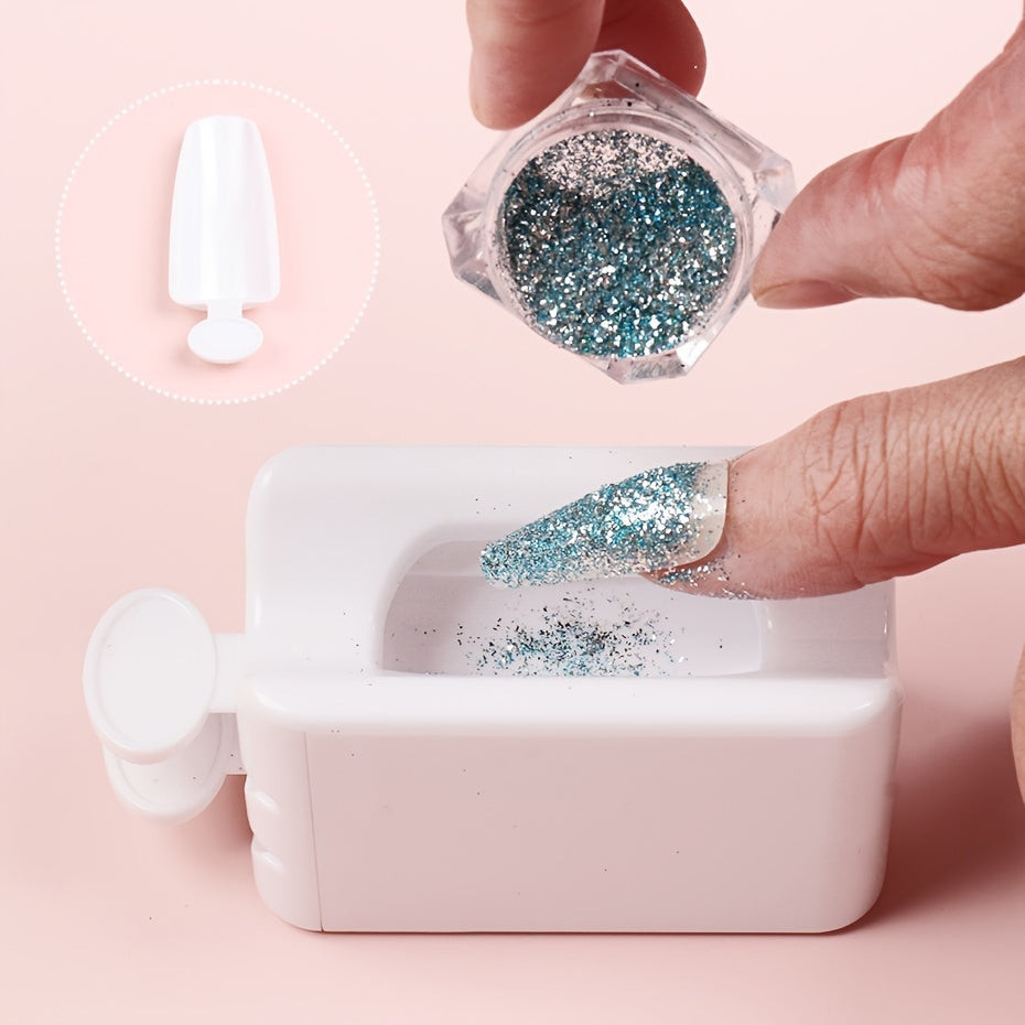Fehér körömcsillámpor újrahasznosító doboz manikűr Gyűjtse össze a pigmentpor mikrogyöngyöket tartálytartó Kétrétegű tárolótok 2*kanállal+1*tölcsérrel