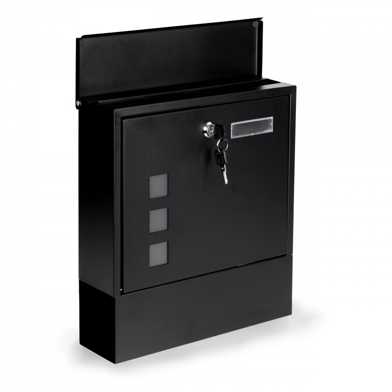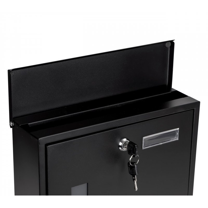 Fekete acél postaláda zárral - modern levelesláda - acél levélláda - biztonságos postaláda