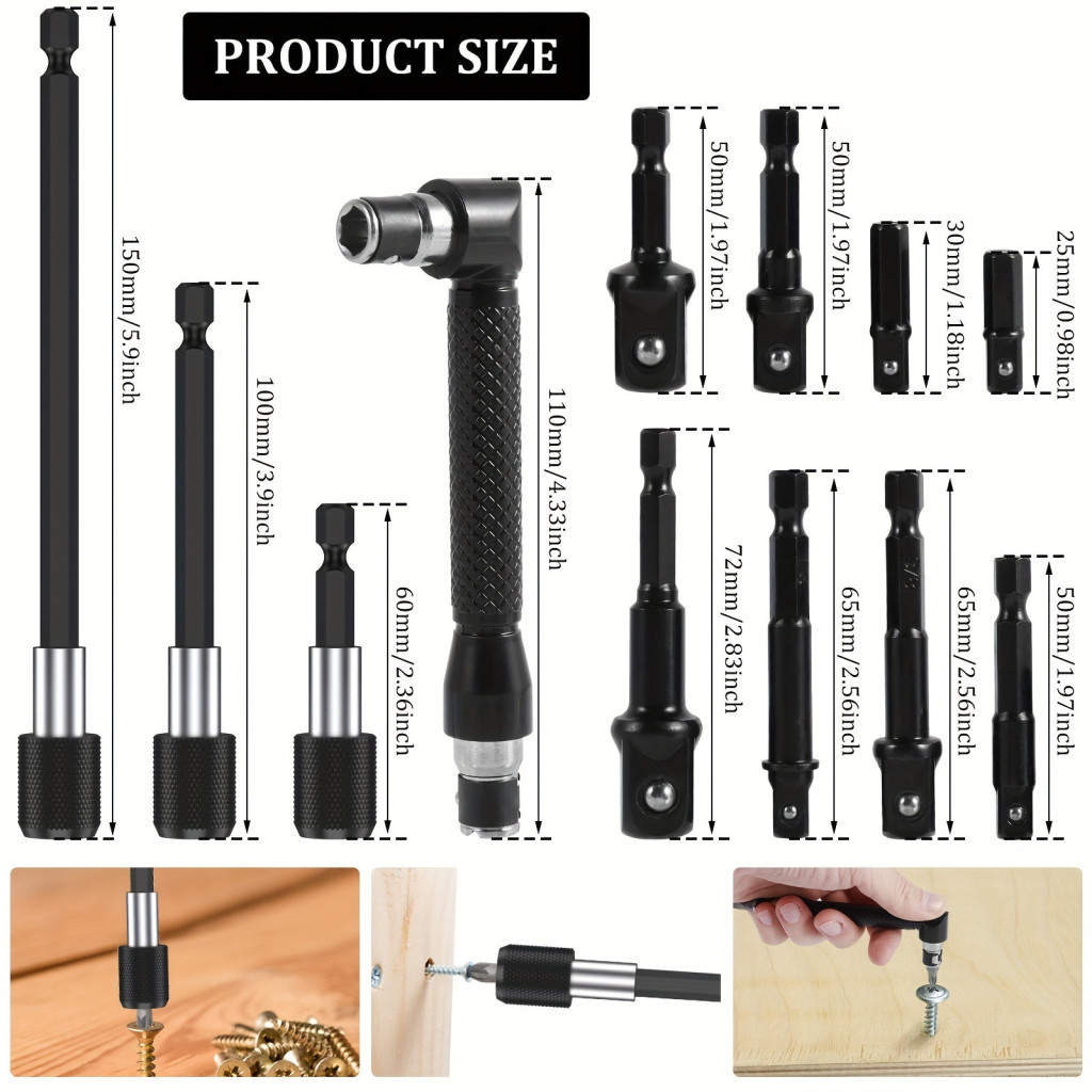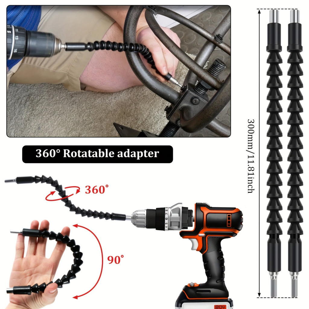Flekszibilis tengelyfúró hosszabbító készlet 360°-ban forgatható dugaszadapterrel
