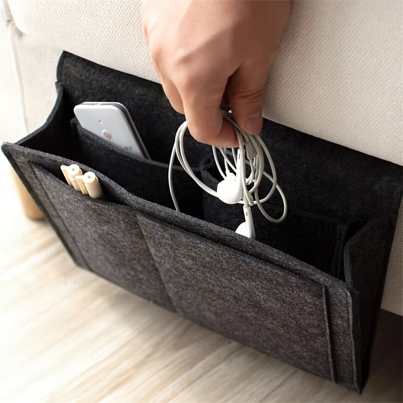 Francia ágy melletti tároló, szervező, szövetből készült akasztós kosár zsebekkel