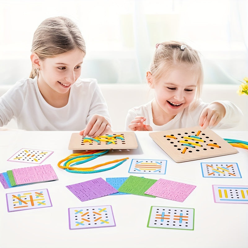 Fűzős fa tábla, készségfejlesztő játék gyerekeknek