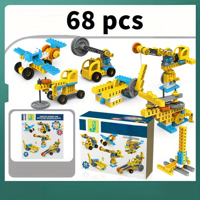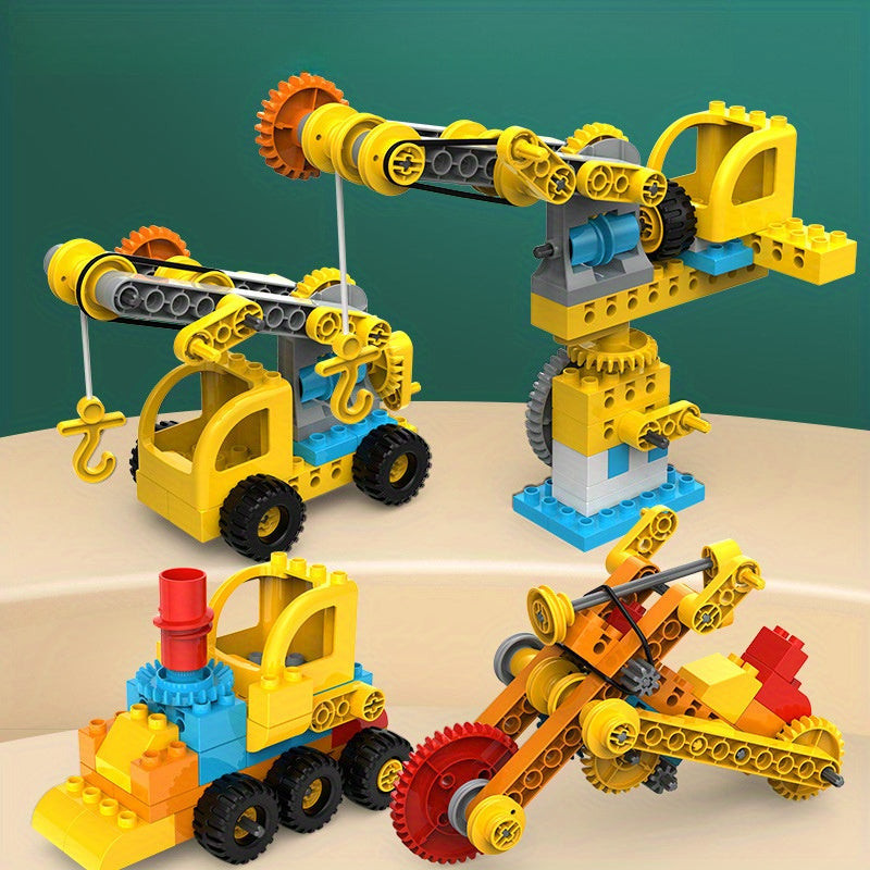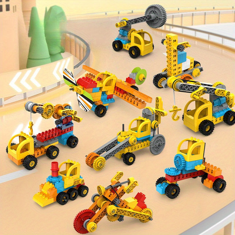 Gyerek építőkocka készlet, fogaskerék mechanizmus és jármű játékkészletek