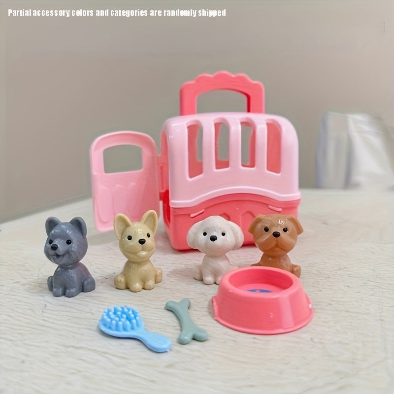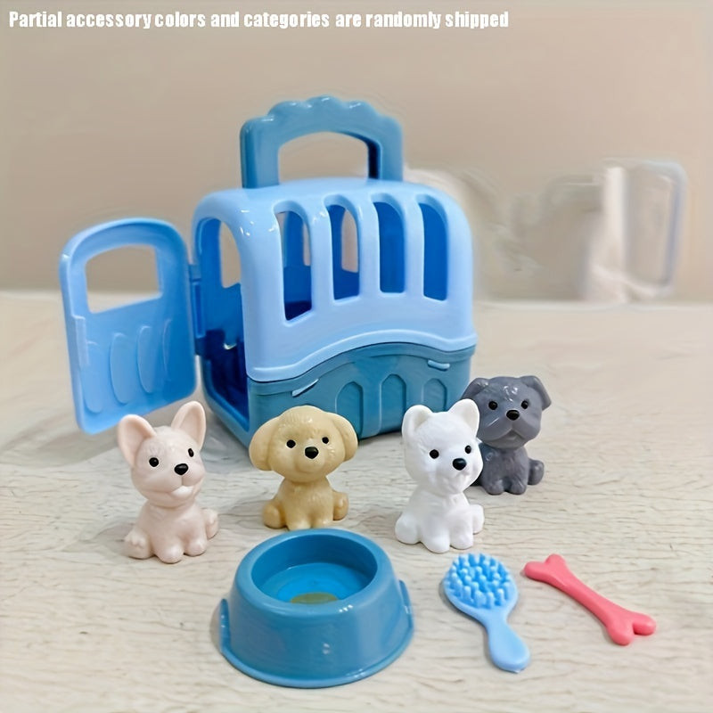 Gyerekeknek szánt kisállat-gondozási játékkészlet miniatűr állatokkal és hordozható ketrecekkel