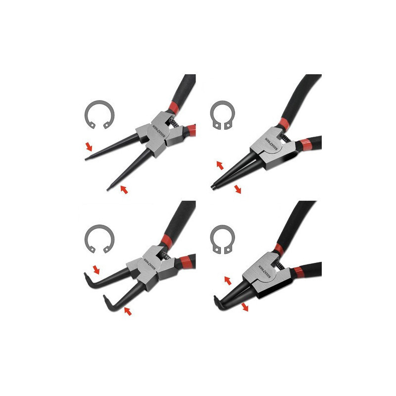 De ez még nem minden! A fogók kiváló minőségű szerszámacélból készültek, így garantáltan tartósak és erősek. Nem számít, milyen nagy nyomás alatt kell dolgoznod, ezek a fogók nem hagynak cserben. A beépített mechanizmus (rugó) pedig lehetővé teszi, hogy könnyedén és kontrolláltan tágítsd vagy szűkítsd a gyűrűket, attól függően, hogy éppen mire van szükséged.