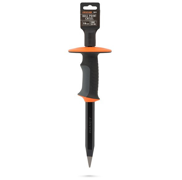 Ergonomikus, stabil fogást biztosító gumírozott markolattal és a munka során a kéz – ütések elleni – védelméért felelős pajzzsal rendelkezik.