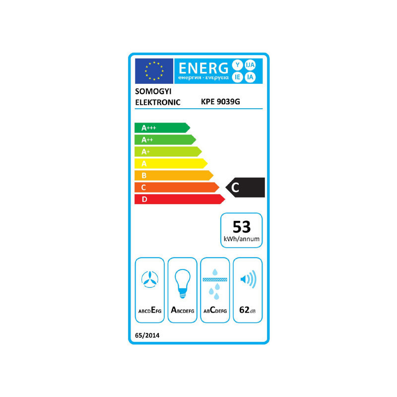 Home KPE 9039G konyhai páraelszívó CYCLONE érintésvezérlés + kézmozgással vezérlés, három sebességfokozat, légszállítás: 390 m3/