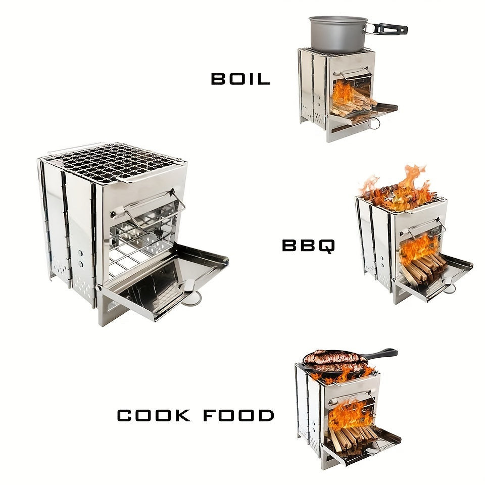 Hordozható,összecsukható rozsdamentes acél tűzhely kültéri főzéshez