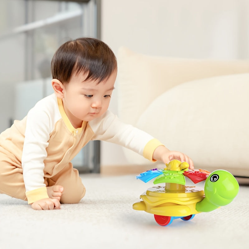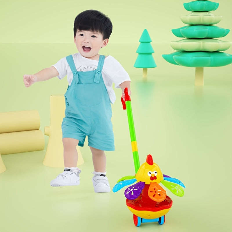 Interaktív Babakocsi Játék Szett – Csirke és Teknős Figurákkal, Forgó Szárnyakkal és Haranggal, 5 darabos