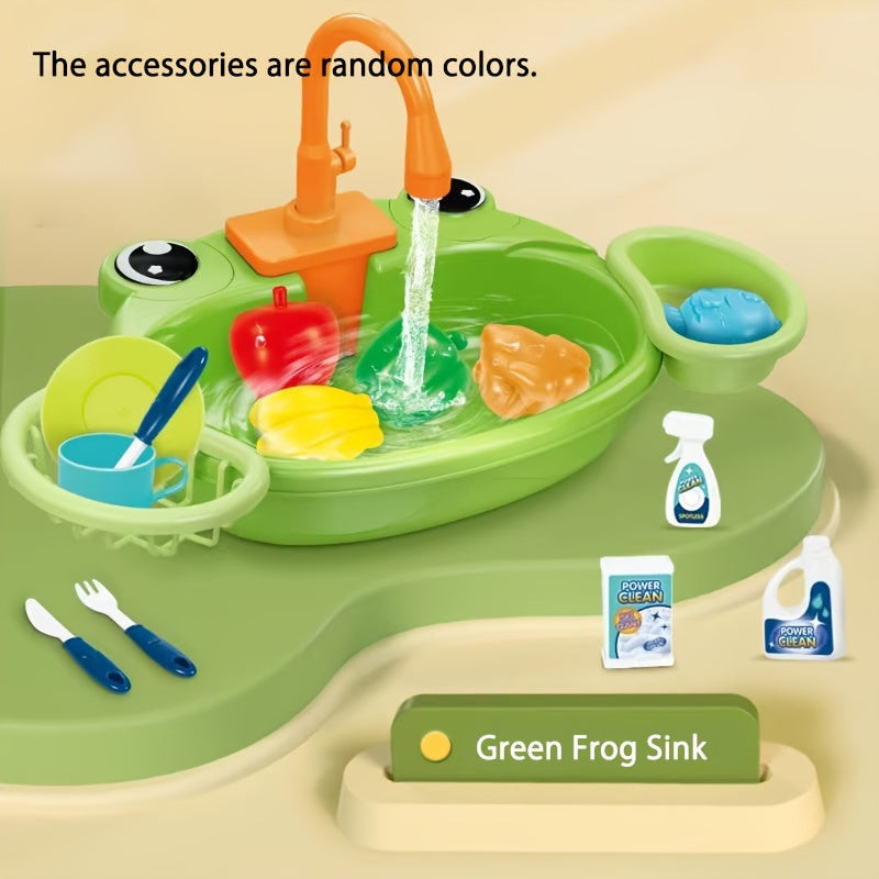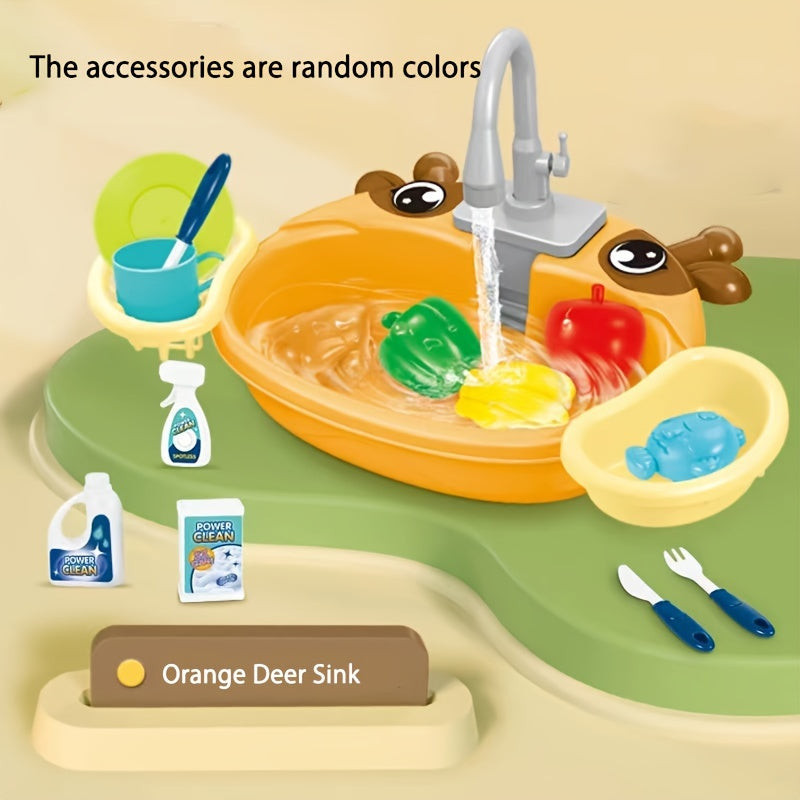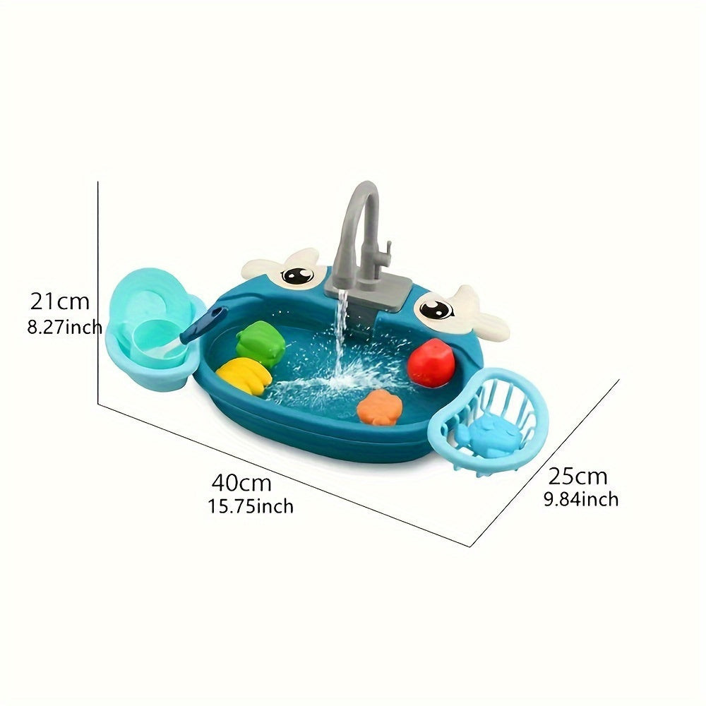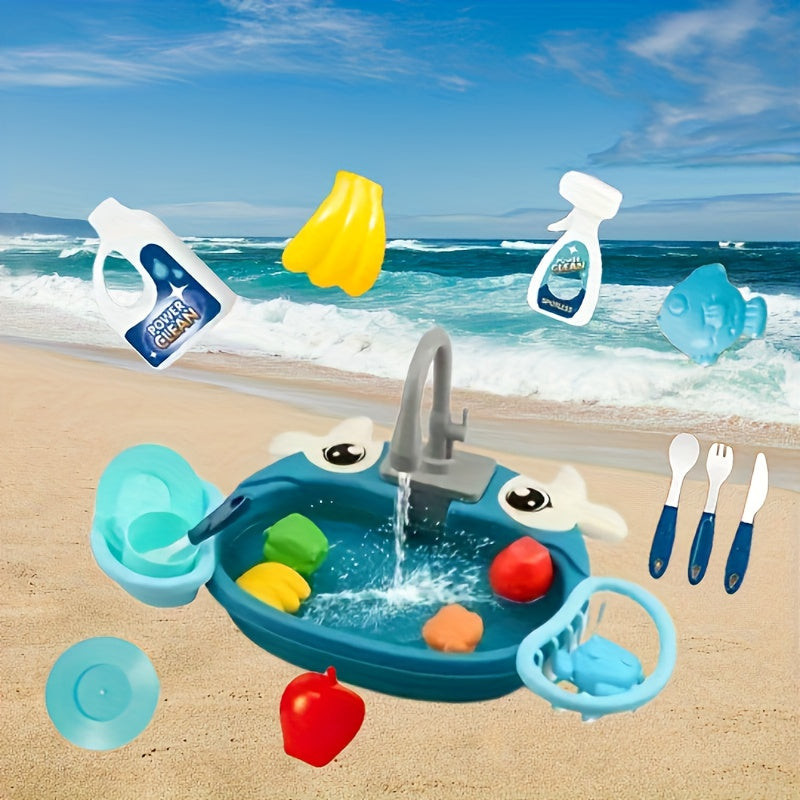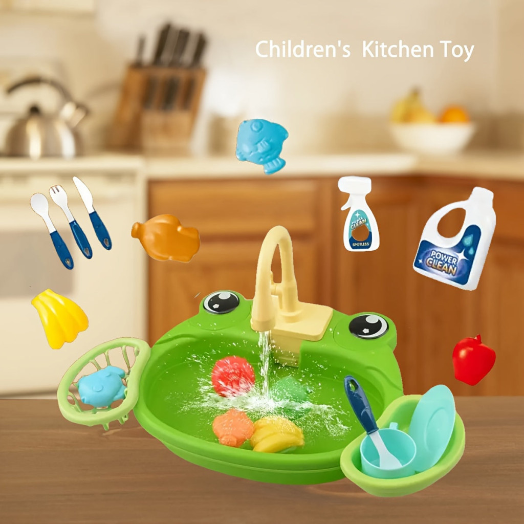 Játék mosogatógép, csappal és evőeszközökkel, zöldség-gyümölcs játék készlettel