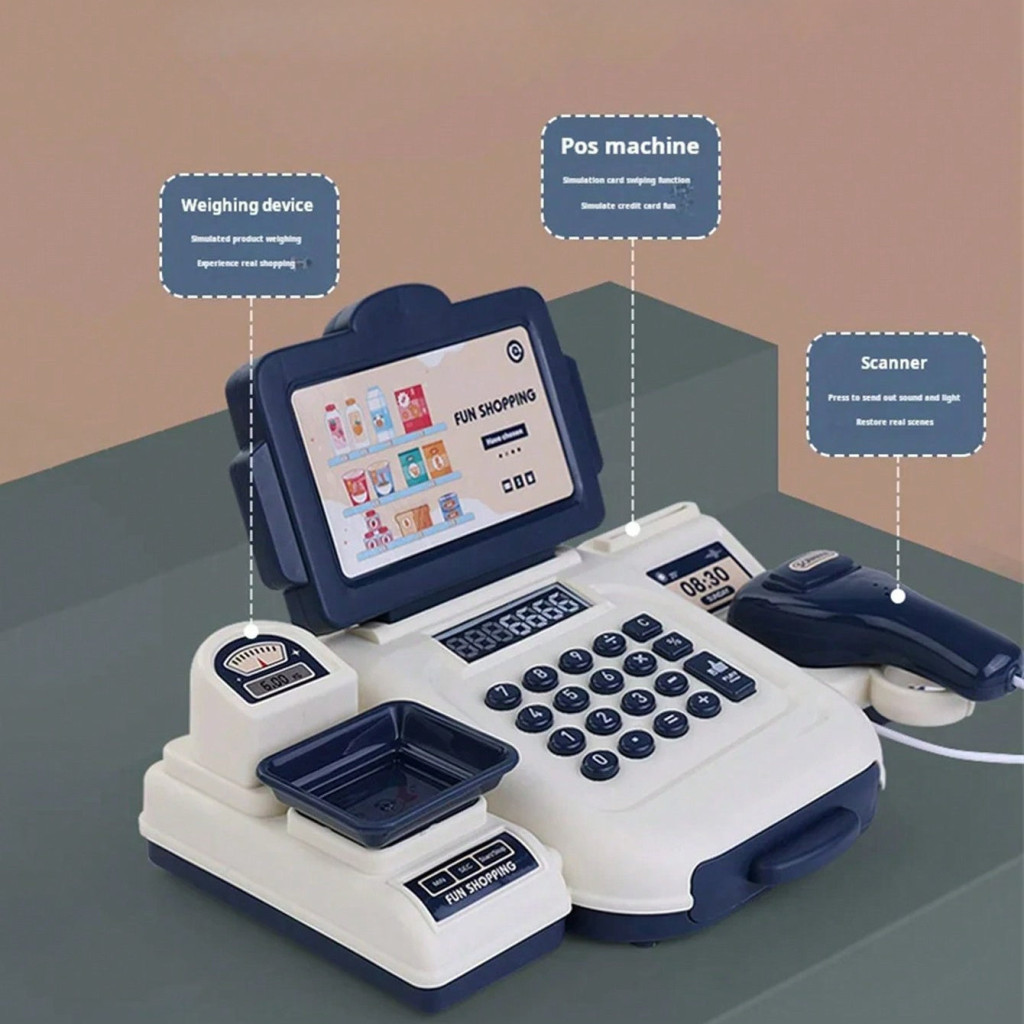Játék pénztárgép készlet játék pénzzel és hitelkártyával