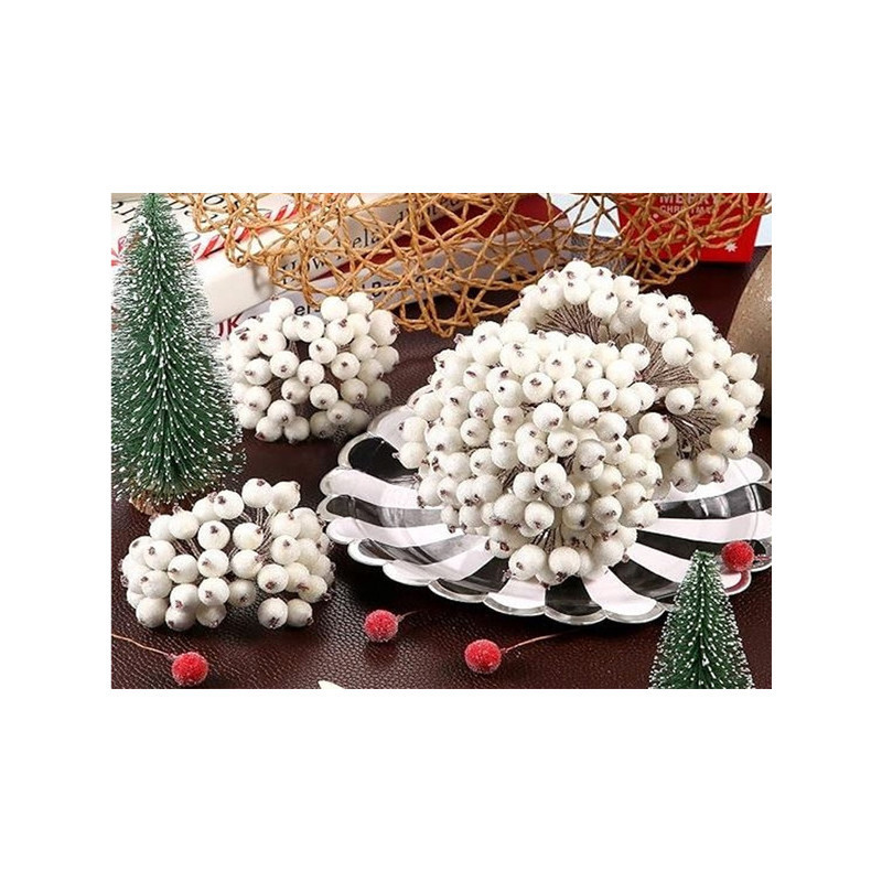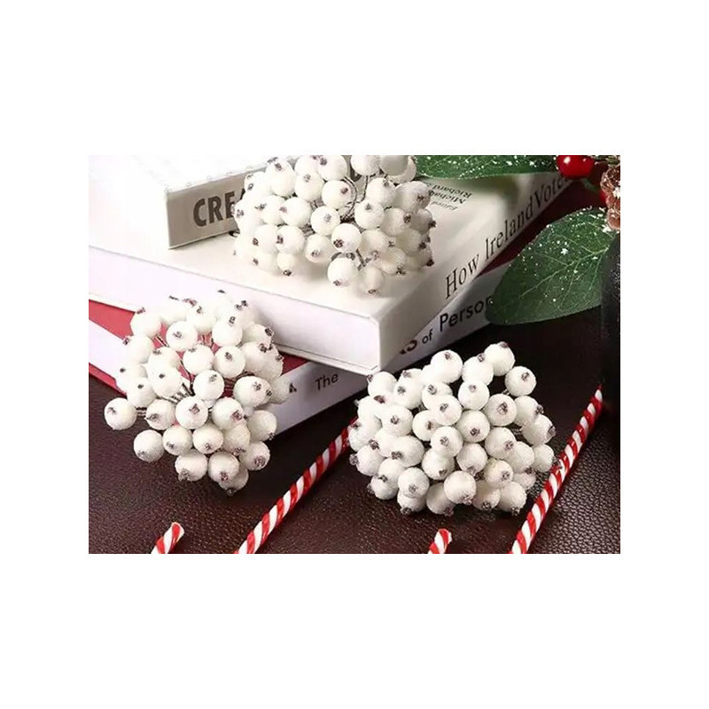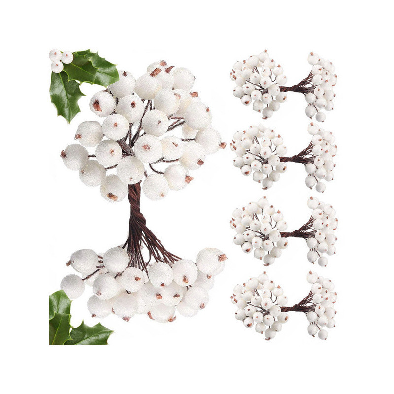 Jeges madárbogyó fehér karácsonyi dekoráció 5 db