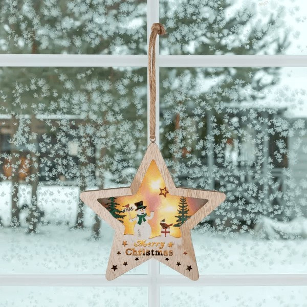 Karácsonyi csillag, fa ablak-, ajtódísz