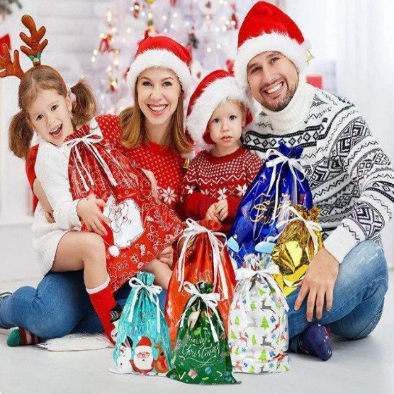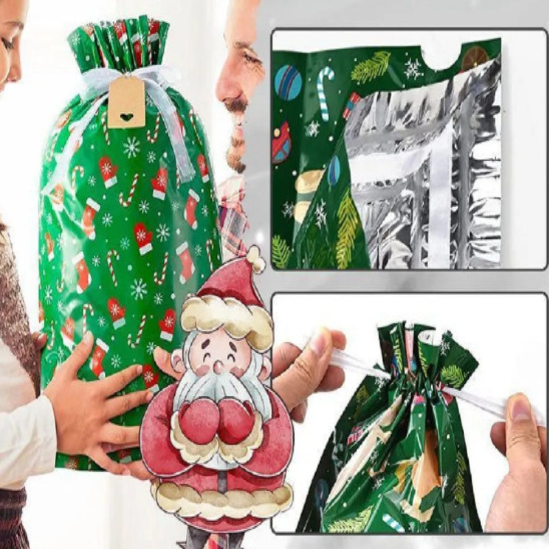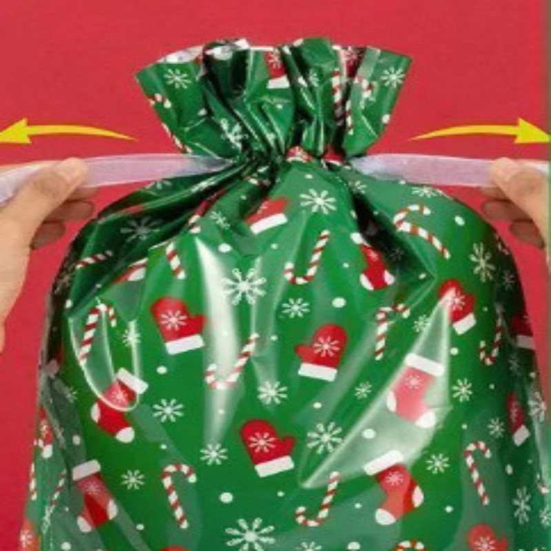 Karácsonyi húzózsinóros ajándéktáska 18 db-os