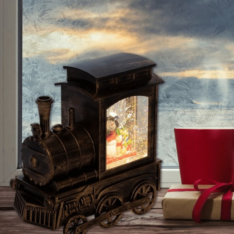 Karácsonyi mozdony dekoráció vízkeveréssel, csillámokkal