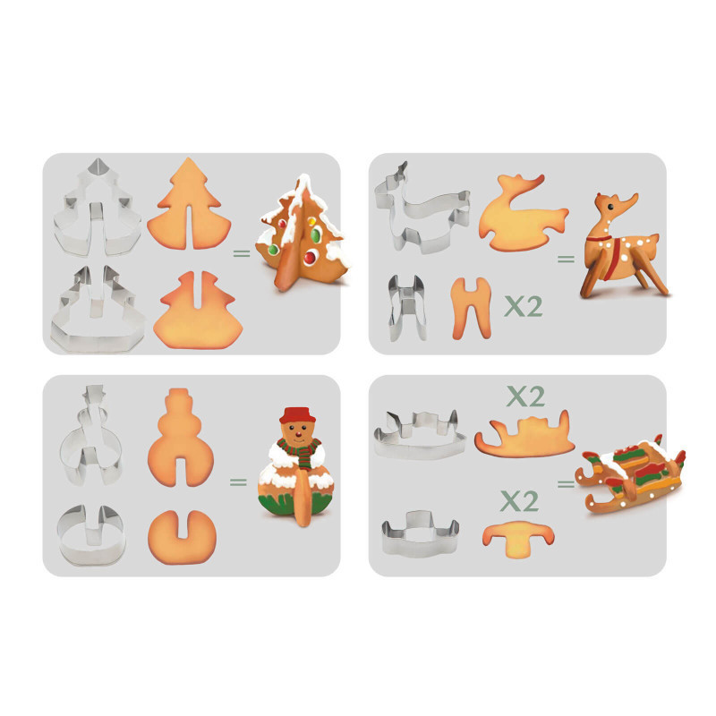 Karácsonyi sütikiszúró forma 3D - fenyőfa, hóember (8 darabos szett)