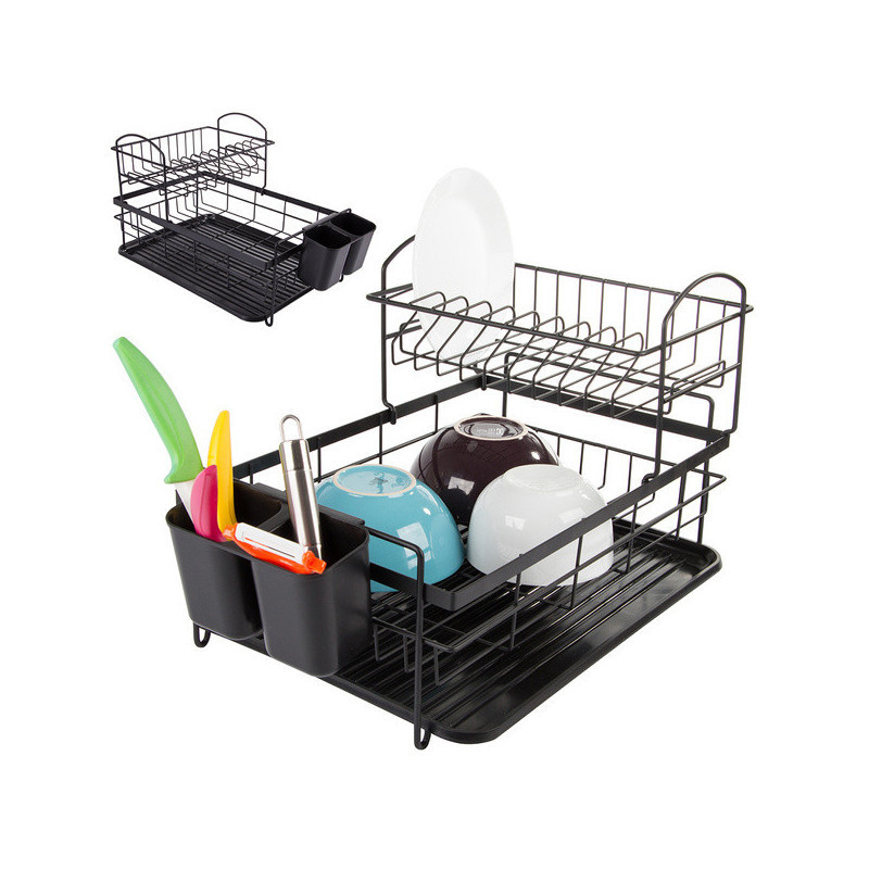 Két szintes csepegtető tálcával - Konyhai edénytartó - Konyhai szárító állvány - Praktikus konyhai eszköz