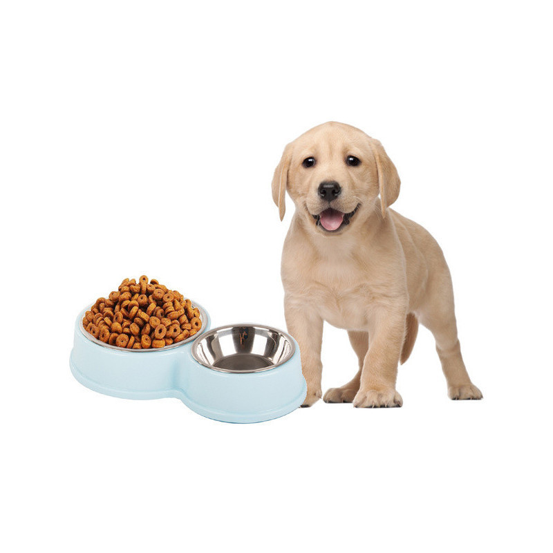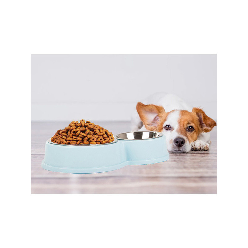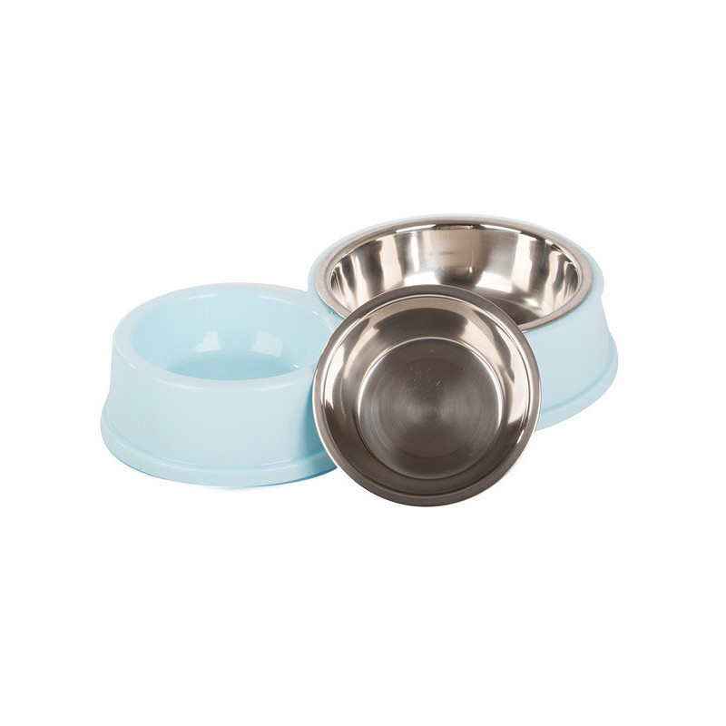 Két tál kutyáknak és macskáknak, fém anyagból, étel és víz számára, nagy és kis állatoknak, praktikus és tartós.