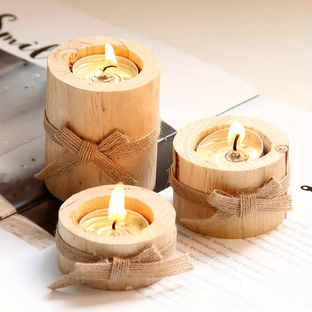 „Kézzel polírozott fa gyertyatartó készlet