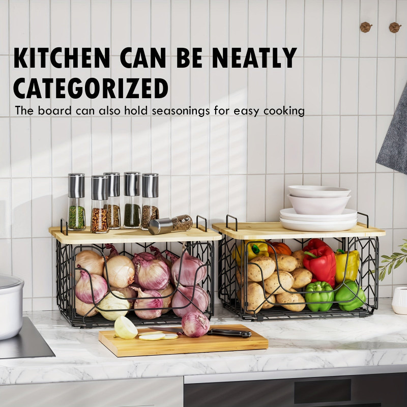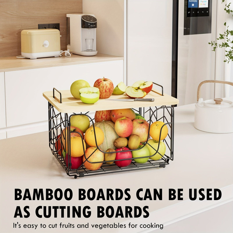 Konyhai tároló kosár bambusz fedővel