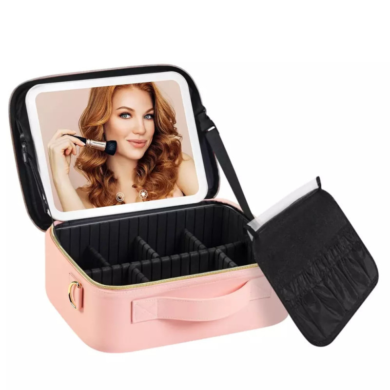 Kozmetikai táska beépített tükörrel - rózsaszín