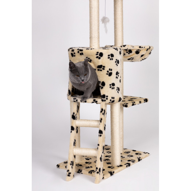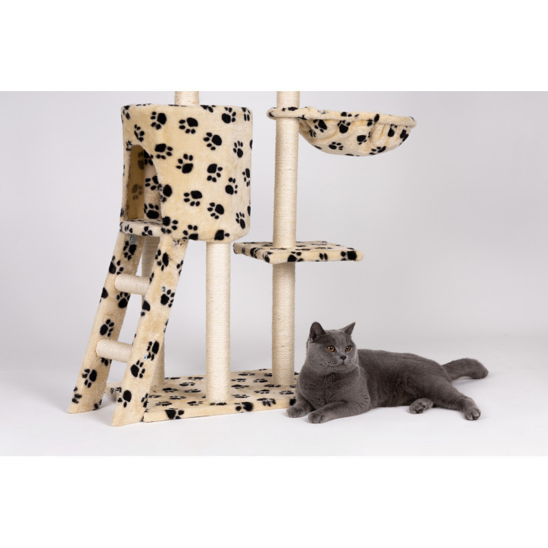 Macskakarmoló ház fával, ággyal, 138cm xl méretben, mancsnyomokkal