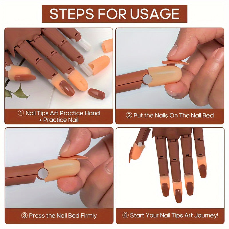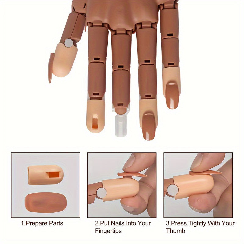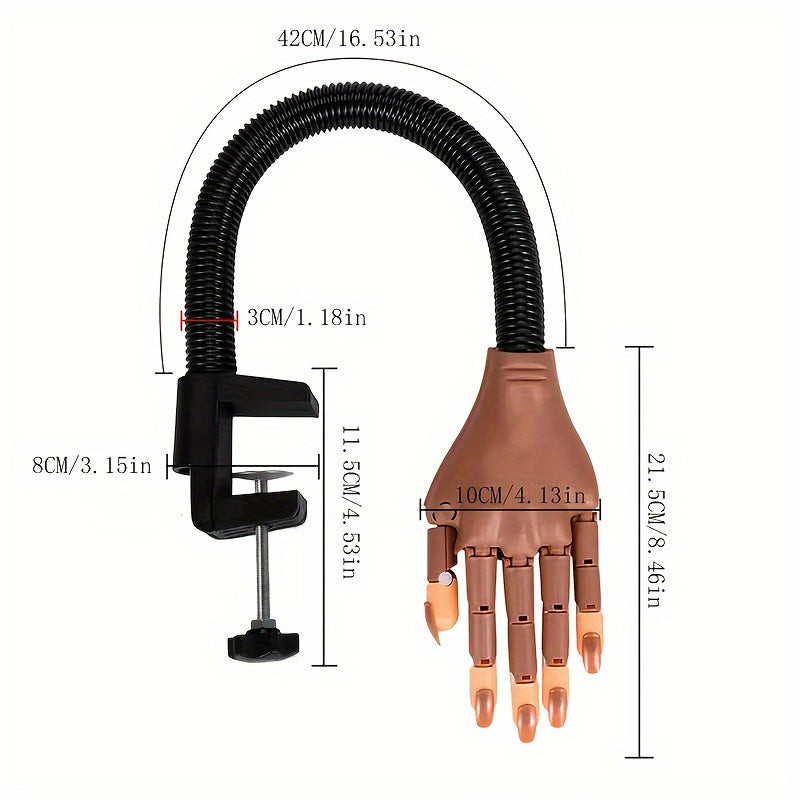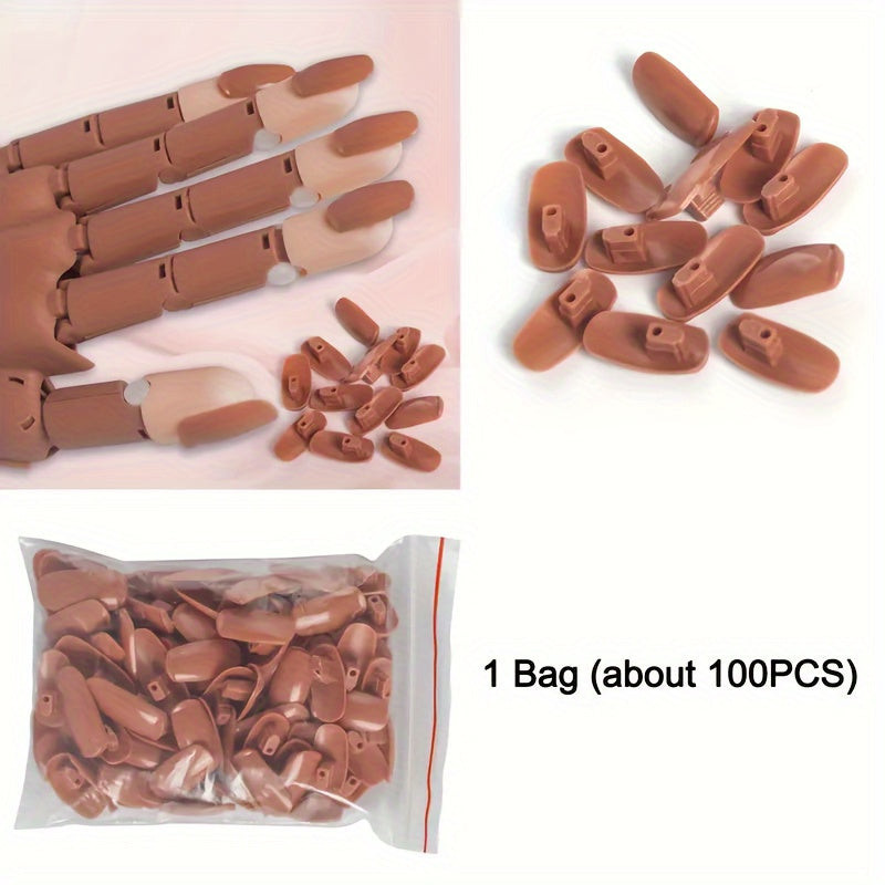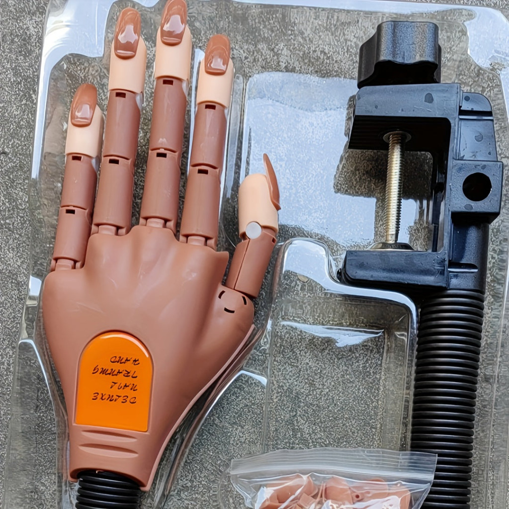 Manikűr edzőmodell kéz rugalmas ujjakkal - Állítható körömdíszítő gyakorló bábu, hipoallergén körömtechnikus eszköz szorítóval, 100 db körömtippet tartalmaz kezdőknek és profiknak