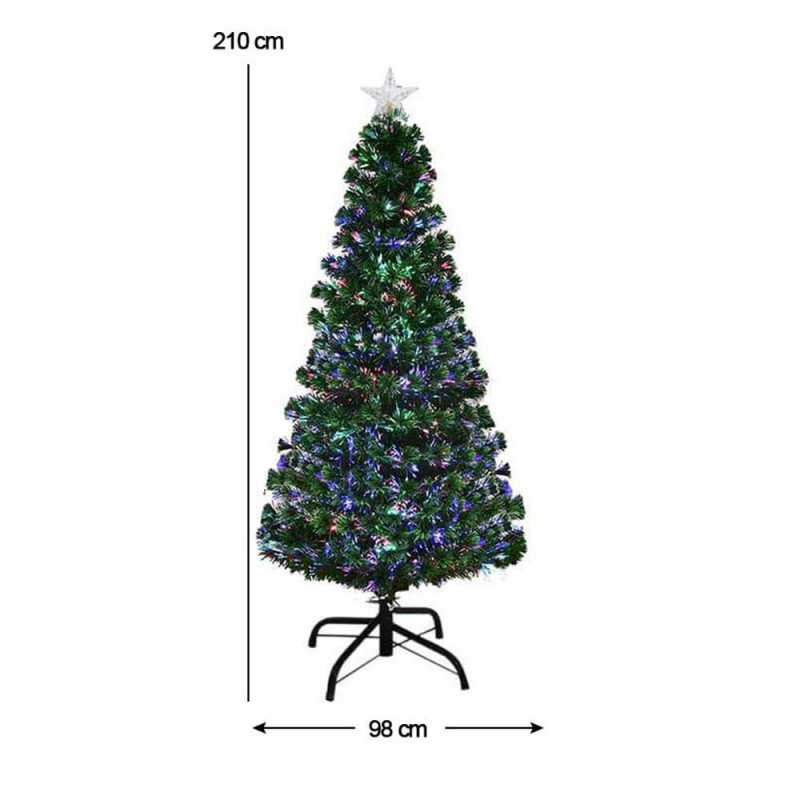 Műfenyő száloptikával színes LED-del 210 cm-es