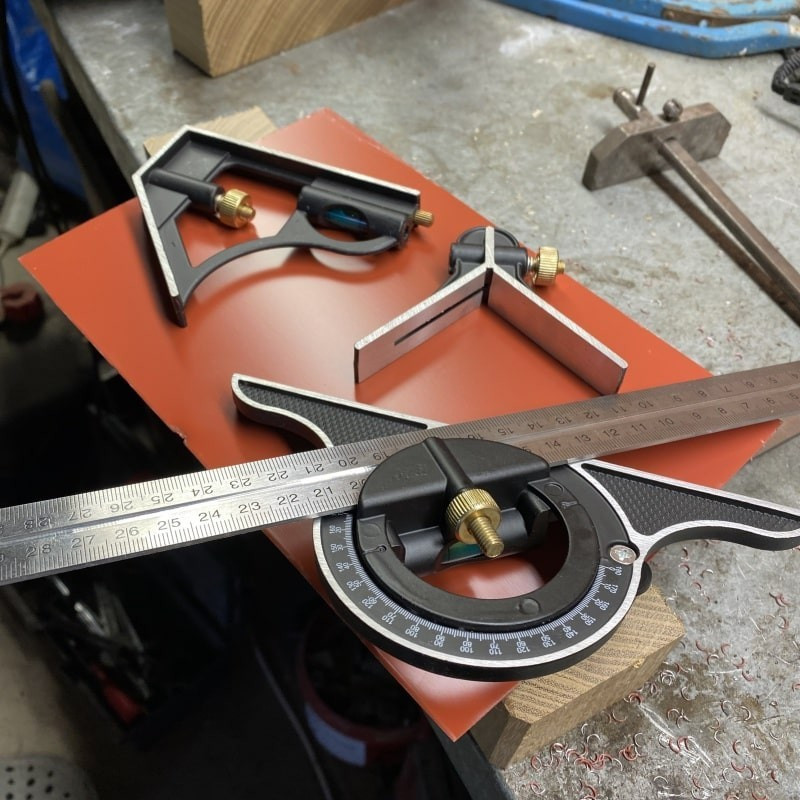 1 db fém vonalzót, szögmérővel és vízmértékkel