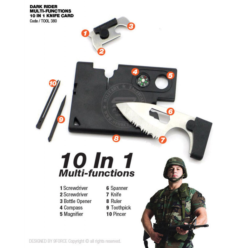 Multifunkciós túlélő kártya szerszámokkal