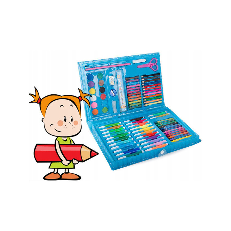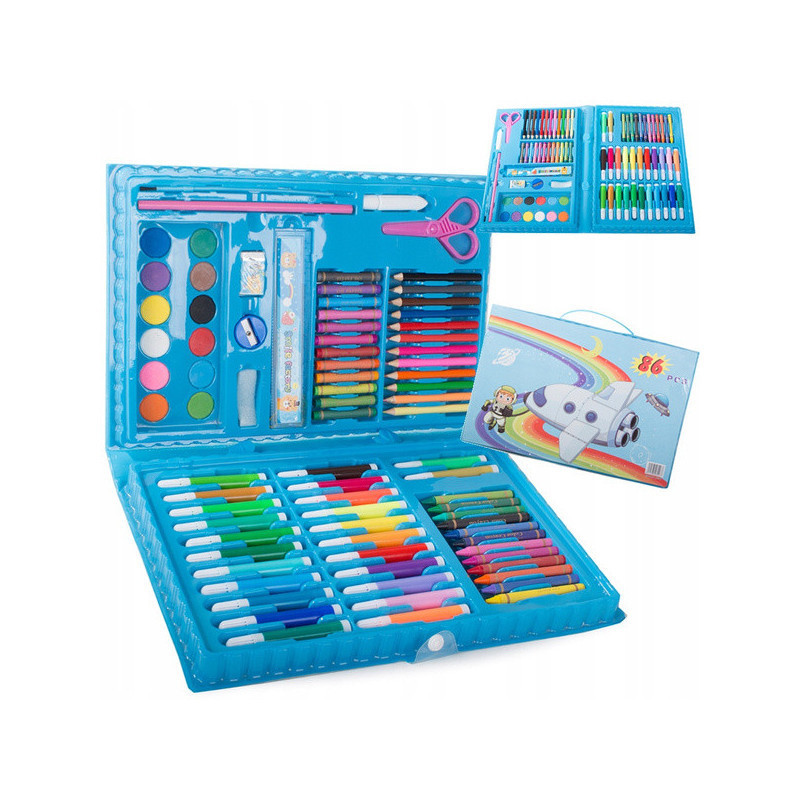 Művészeti készlet 86 db-os tokban - rajzolás, festés, alkotás, színes ceruzák, ecsetek, festékek, művészeti kellékek