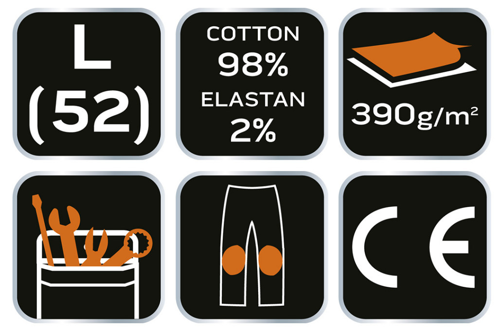 NEO TOOLS Farmer Munkásnadrág, DENIM, 98% pamut, térdvédő betét zsebbel, gombos oldalzsebekkel, 255 g/m2, L 81-228-L