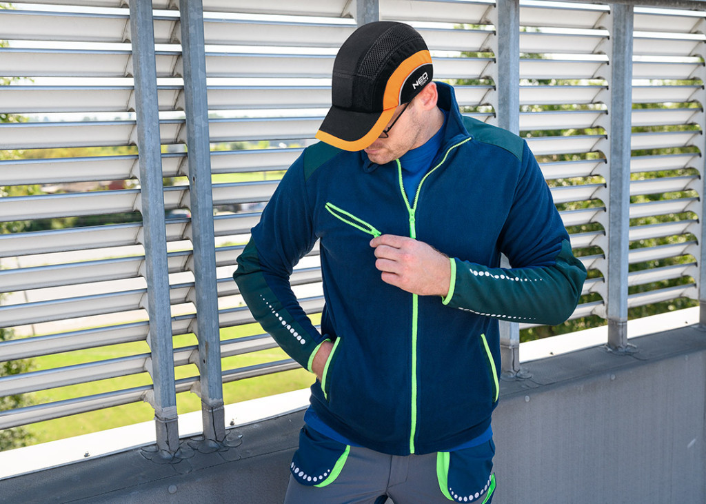 NEO TOOLS Munkavédelmi baseball sapka, merevítettl, fekete és narancssárga, CE 97-592