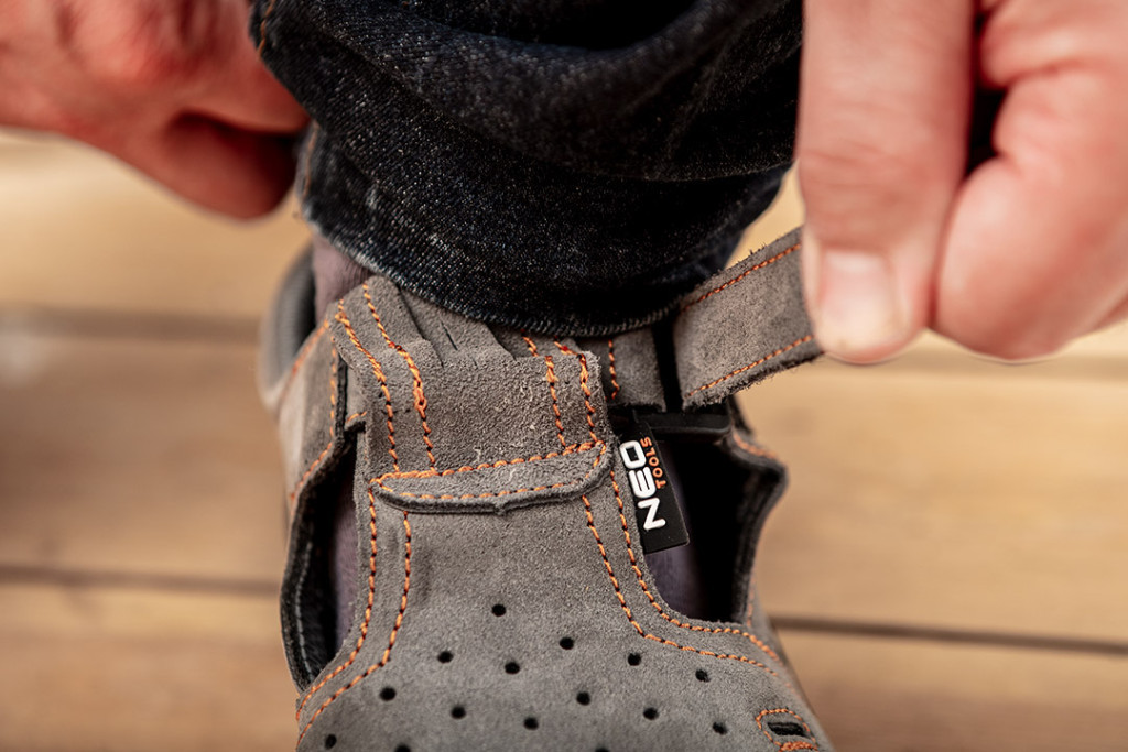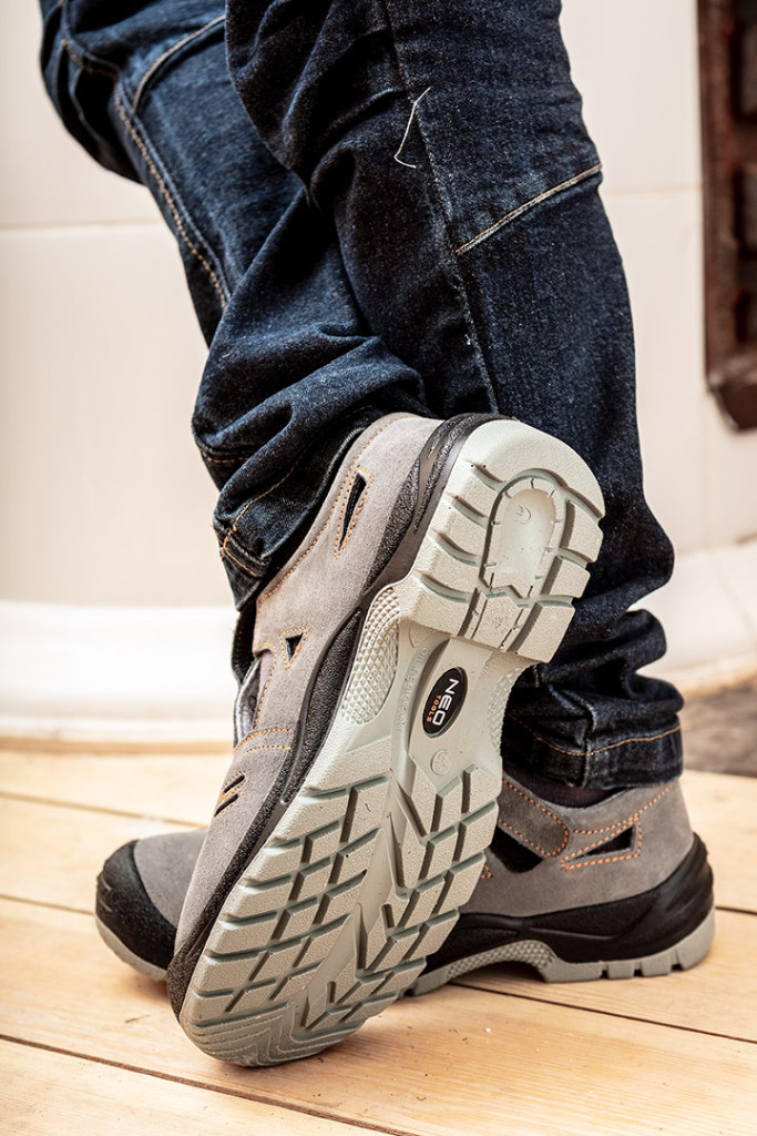 A NEO munkavédelmi szandál S1 SRC kategóriával rendelkezik. Kiváló minőségű velúrbőrből készült, a kivágások növelik a kényelmet és a komfortot a nyári időszakban vagy beltérben végzett munka közben. Csúszásmentes, kompozit talp véd a mechanikai sérülések ellen. A cipő belsejében található puha kivitelnek köszönhetően a munkakényelem magas szinten marad. A CE-jelölés garanciát jelent a biztonságra, azt bizonyítja, hogy a termék megfelel az összes uniós követelménynek. A NEO márka megfelel a szakemberek elvárásainak. Munkaszandál, velúr, az S1 SRC szerint gyártott, SRC - csúszásállóság, fémmentes, csúszásgátló talp, rezgéscsillapító rendszerrel, kopásálló, olaj-benzin álló, elektrosztatikus betét.