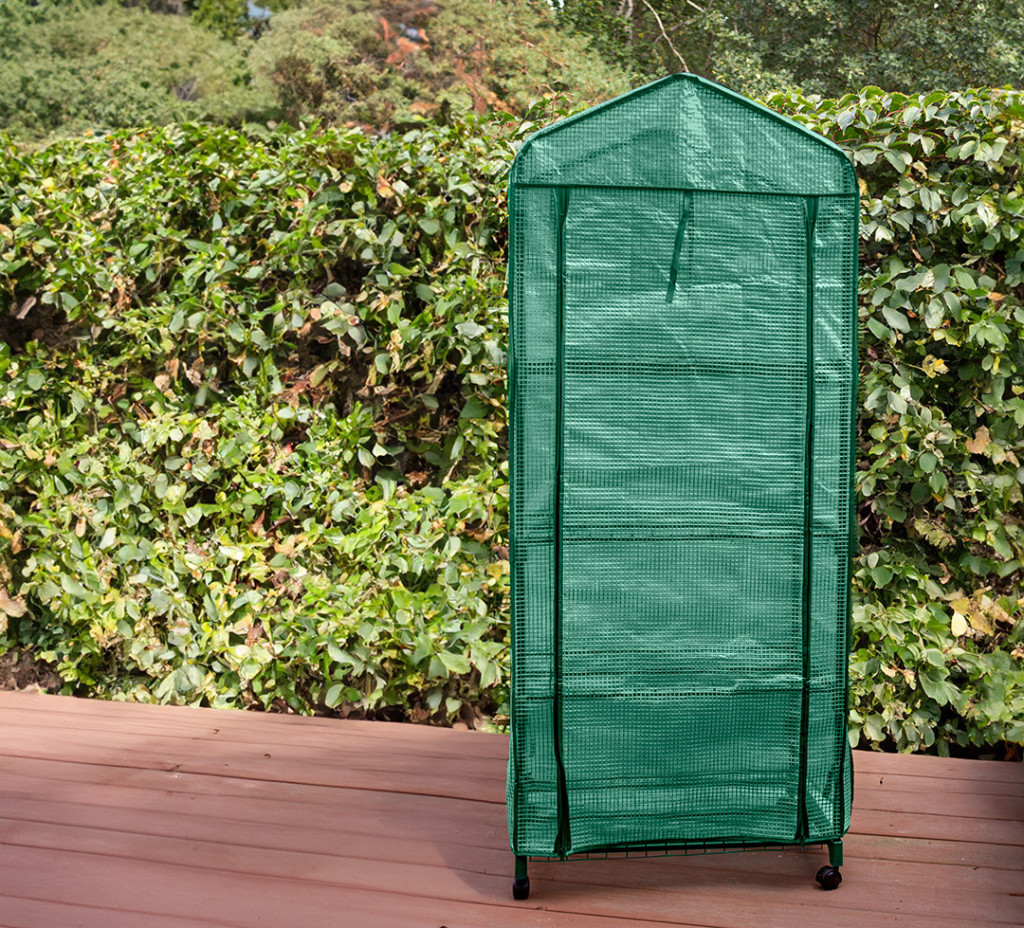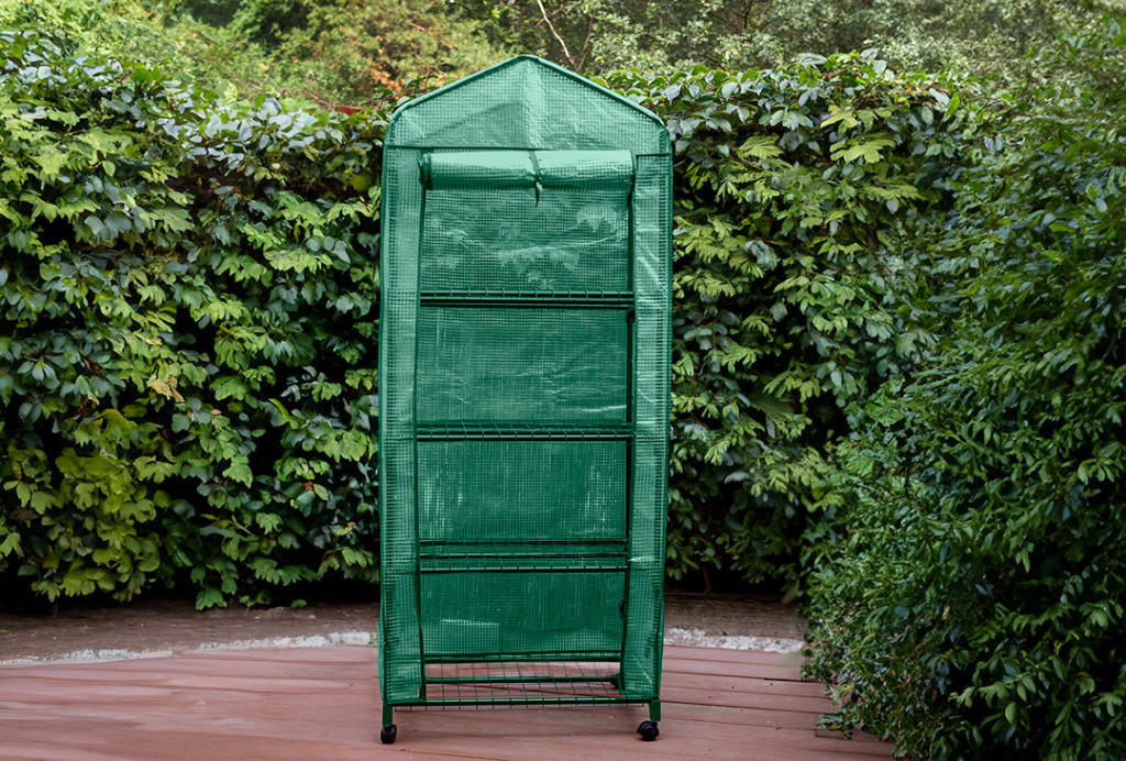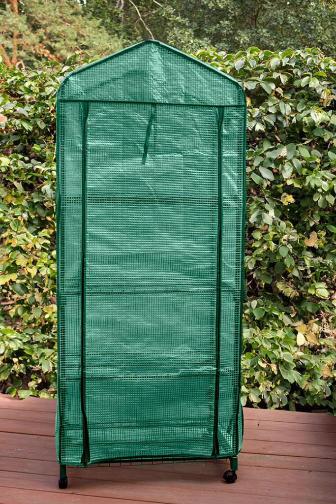 NEO 15-903 növényház, 69 x 49 x 160 cm, PE fólia, fémszerkezet. kerekek. Összecsukható üvegház, amely házon belül és kívül is használható. Stabil, porszórt fémszerkezettel és PE fóliával rendelkezik. Méretei: 69 x 49 x 160 cm. Könnyen összeszerelhető. Praktikus cipzárral záródik, és emellett az üvegház eleje felhajtható a növények könnyebb kezelése érdekében. Az elülső nyílás 50 cm széles. Az üvegház négy polccal van felszerelve. Négy görgőjének köszönhetően könnyen mozgatható a kívánt helyre, kettő pedig fékkel van ellátva, hogy rögzítse a helyét. Modern és érdekes alternatíva lesz mindenkinek, aki saját gyógynövény-, gyümölcs- vagy zöldségtermesztésről álmodik.